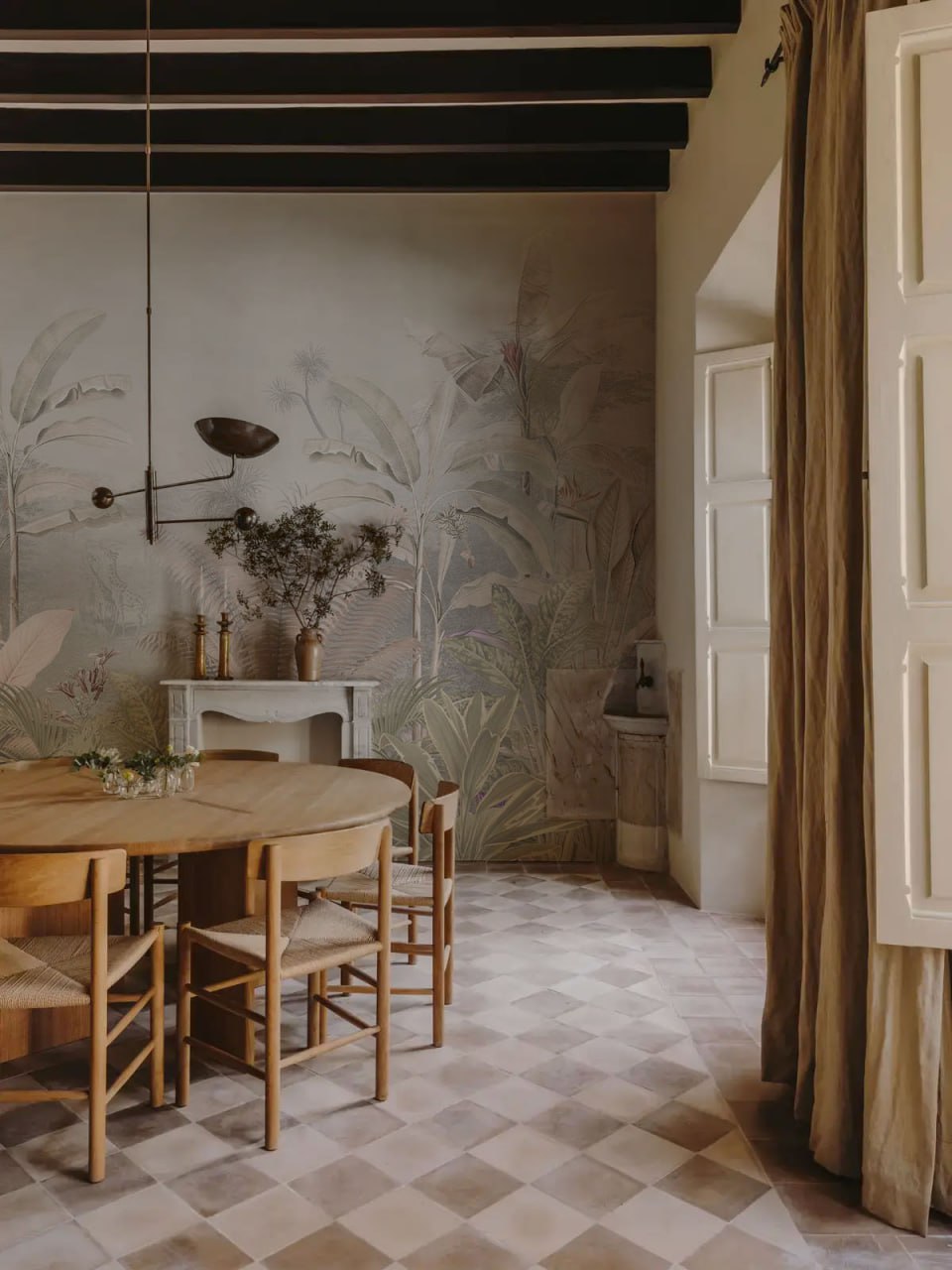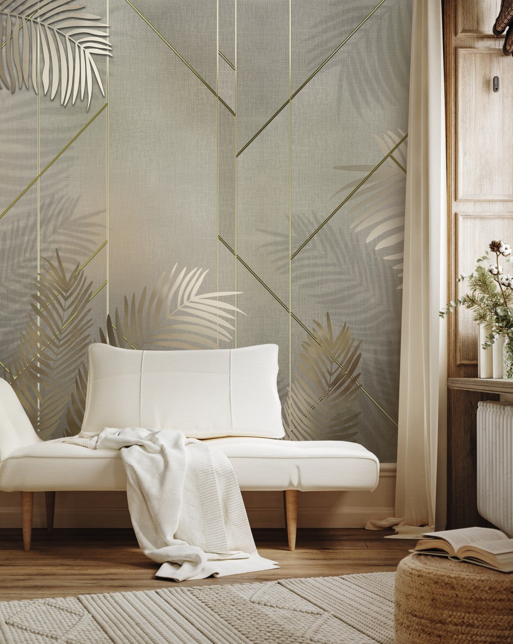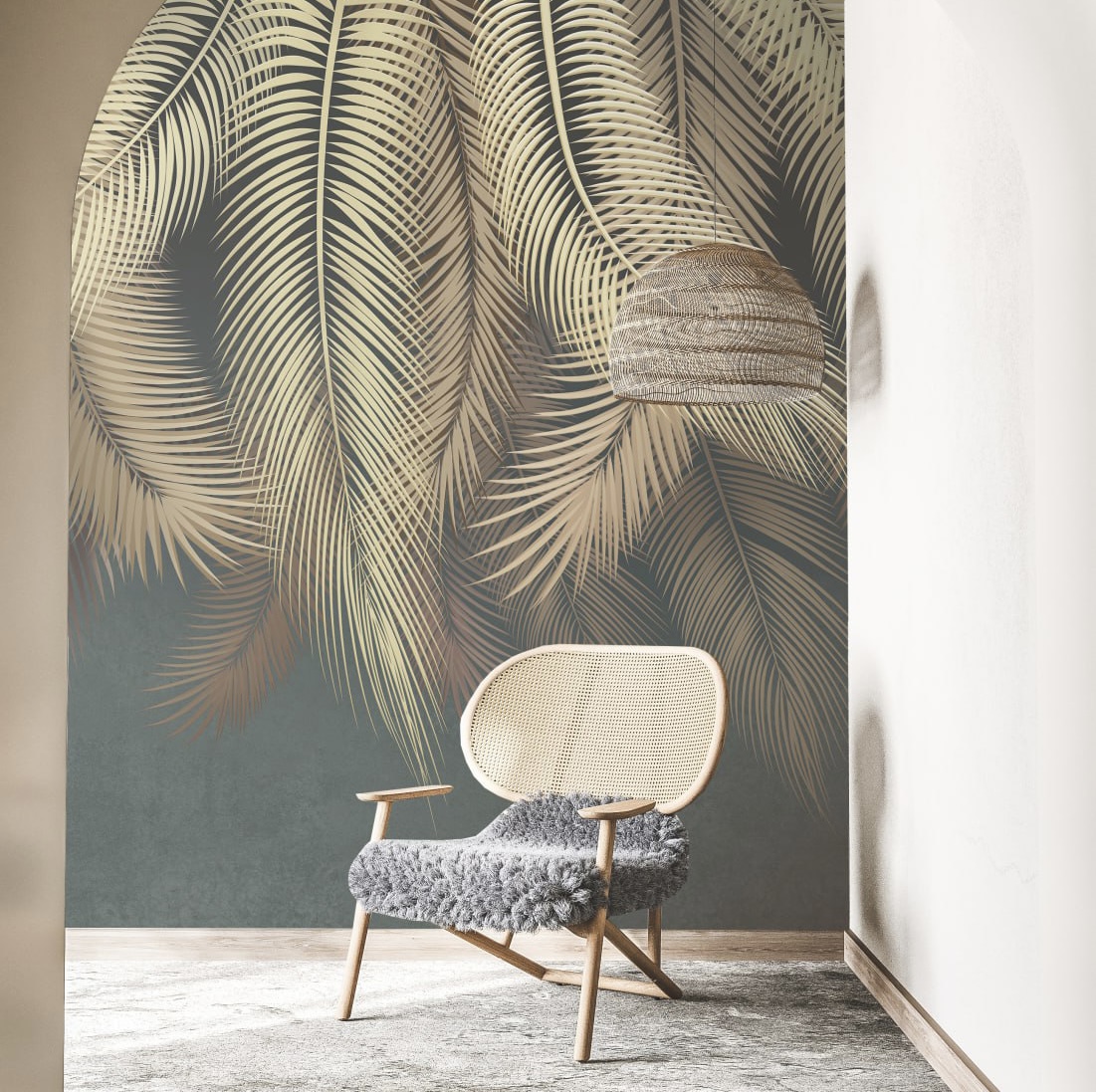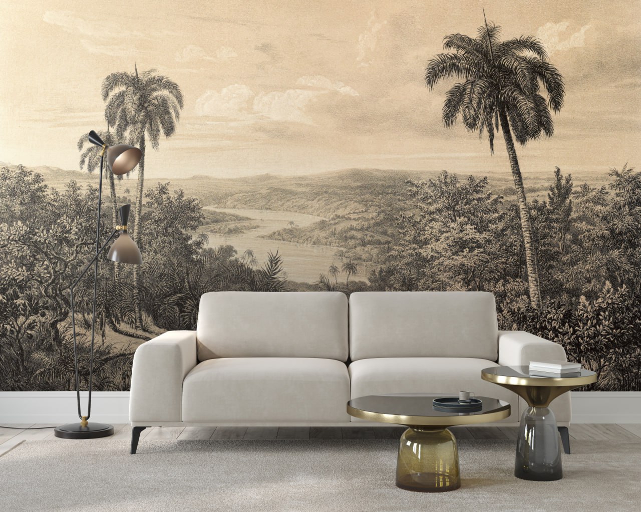 Vintage Palm Mural, Beige